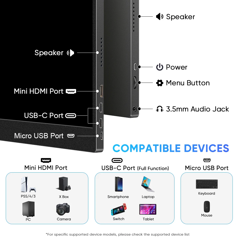 Plug-and-play with laptops (Mac/Windows), tablets, phones, gaming consoles (PS5/Switch), and cameras. -